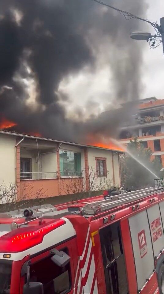 İstanbul Sultanbeyli’de 2 katlı binanın çatısında bilinmeyen nedenle yangın çıktı. Alevler, olay yerine gelen itfaiye ekipleri tarafından söndürüldü.